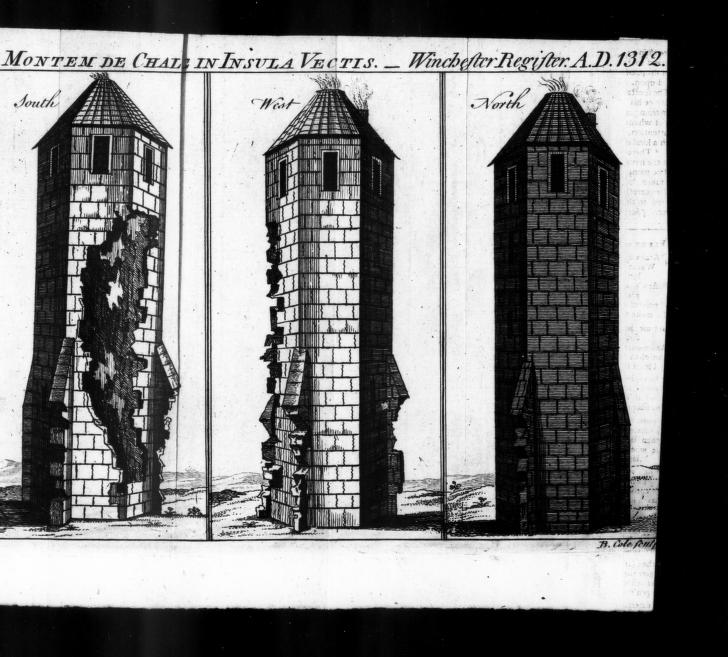 I Send you four views of the tower of St Catharine’s which stands upon the summit of St Catharine’s Hill Down, on the back of the Isle of Wight, about 750 feet higher than high-water mark, and about half a mile from the sea, commanding the most extensive view, both by sea and land, of any place in Britain. It is part of a consecrated building of great antiquity, as appears by the Winchester register, in which there is this entry: